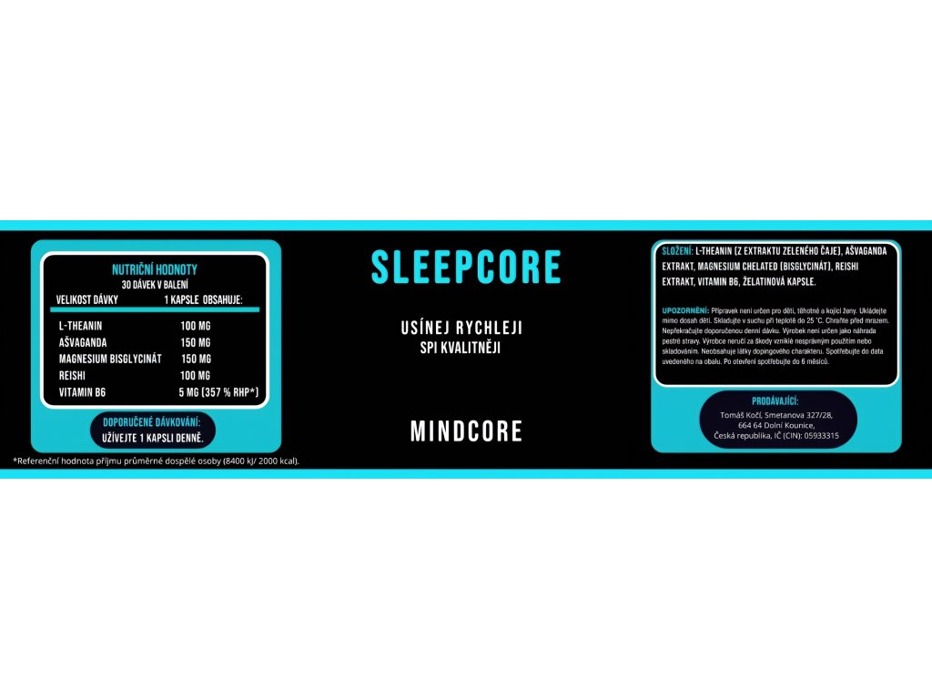 SleepCore™ kombinuje adaptogeny, extrakty a minerály pro rychlejší usínání, hlubší spánek a lepší regeneraci.